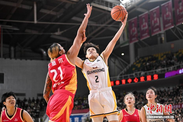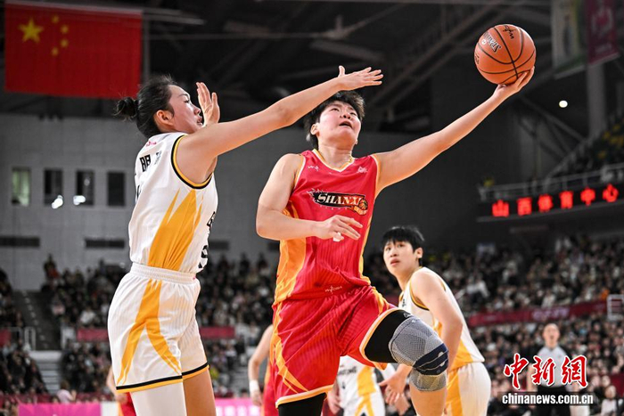 12月25日,东莞队球员杨舒予在比赛中上篮。当日,在太原举行的2025-2026赛季中国女子篮球联赛常规赛第9轮比赛中,山西竹叶青队主场以69比72不敌东莞新彤盛队。中新社记者 韦亮 摄