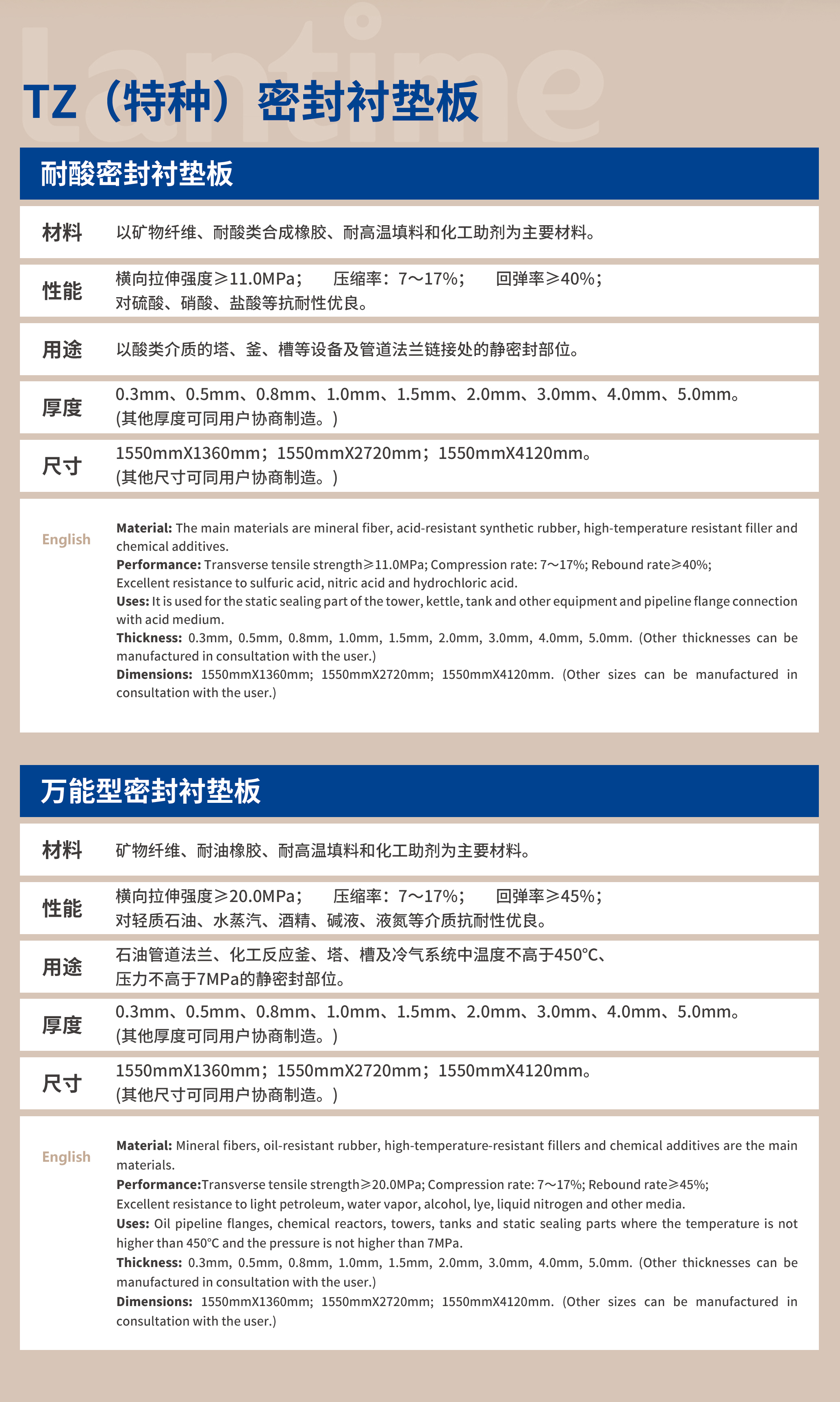 特种密封衬垫板